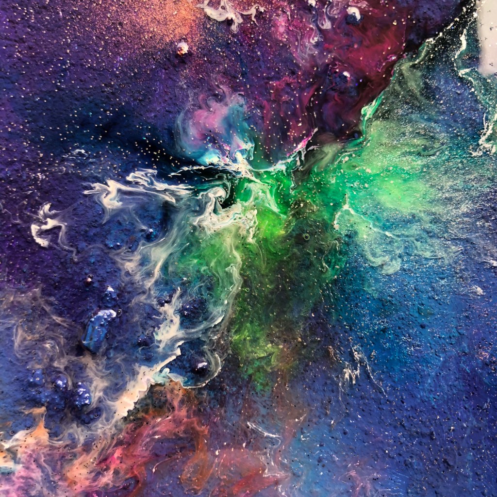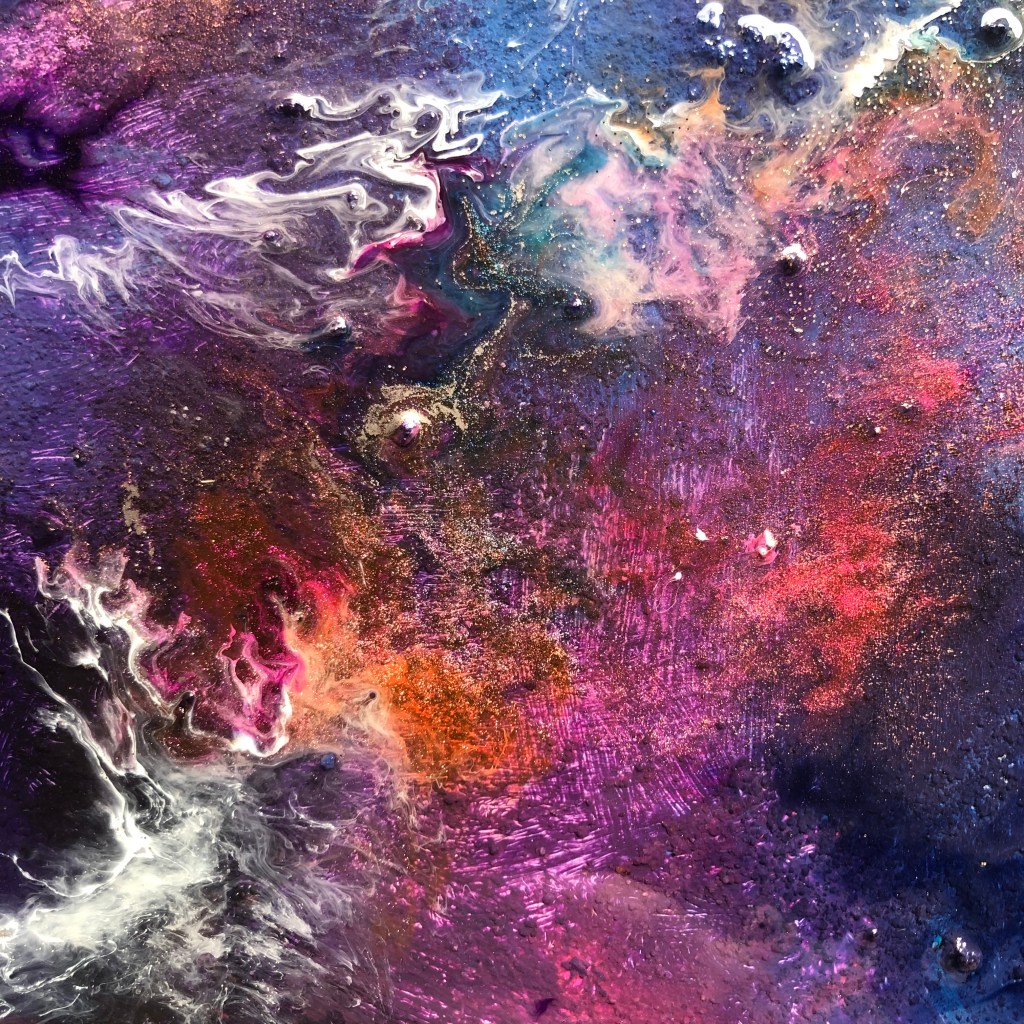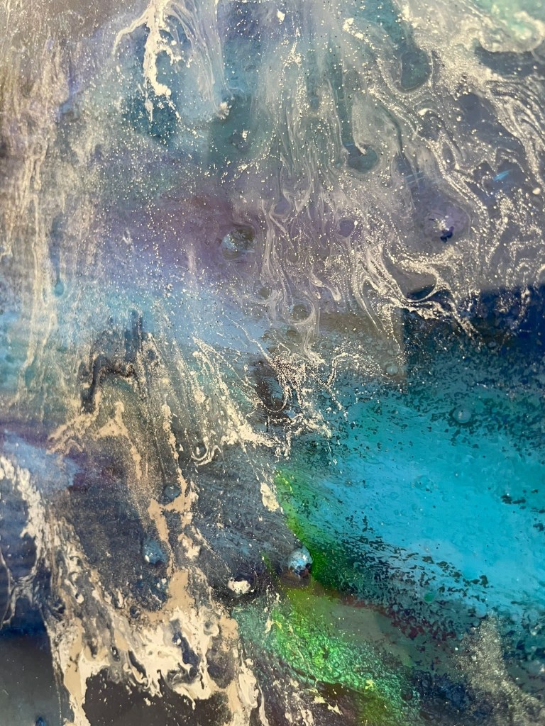 I have really enjoyed creating a series of 3 resin panels – experimenting with textures, alcohol inks, metallics and glitters. I have also explored different amounts of resin layers too which has been great for creating a sense of depth within each piece.