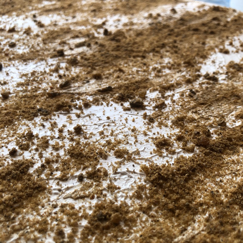 As part of the circular series, I decided I wanted to explore texture paste (my usual go to media), but this time I wanted to also add some extra detail, so I turned to some sand that I had in my garage. I simply applied the texture paste and sprinkled the sand on in various places – making some areas more denser than others. I then let this dry and brushed the excess sand away.